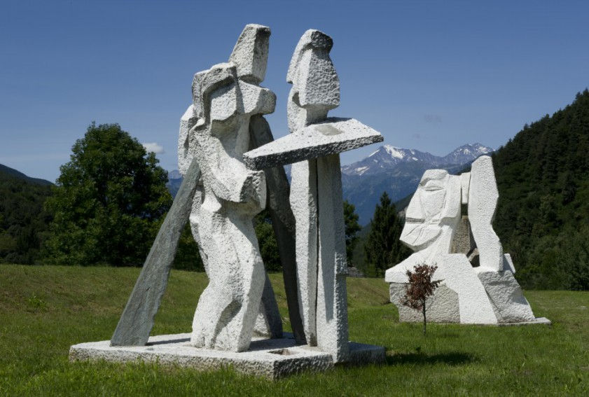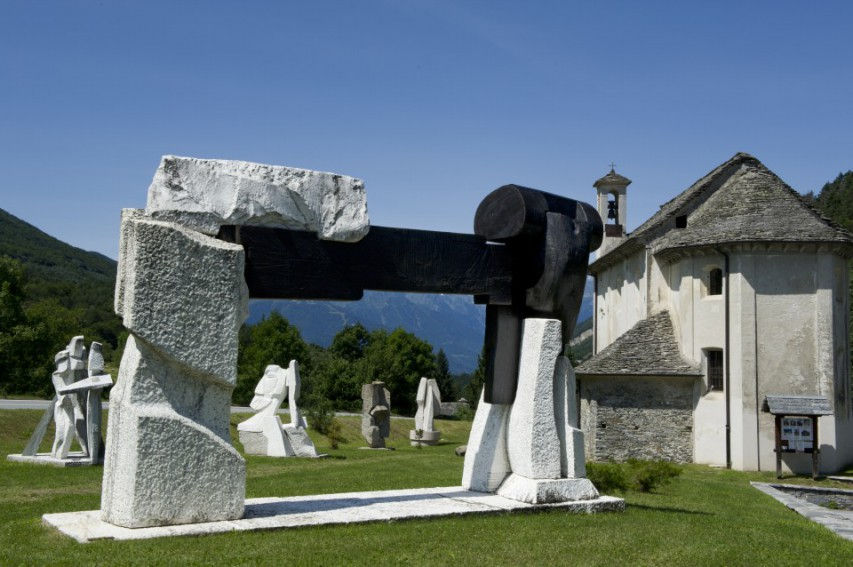 Il Giardino di Montagna, nome scelto dall’artista per la sua collezione, ospita oggi le opere dello scultore Giancarlo Sangregorio e si colloca nello splendido e incontaminato paesaggio alpino della Val Grande. Questo è il luogo in cui Sangregorio scelse, significativamente, di installare le sue opere: il rapporto con l’ambiente circostante, il dialogo primordiale con la natura e gli interrogativi sulle origini, sono stati infatti i temi che hanno ispirato le sue opere. Giancarlo Sangregorio iniziò la sua produzione artistica proprio nell’Ossola, affascinato dalla materia delle sue cave. Le sue opere sono oggi esposte in numerose collezioni private e pubbliche, e il “Giardino di Montagna” di Druogno è proprio tra queste. Nelle immediate vicinanze del “Giardino di Montagna”, che raccoglie sette sculture dell’artista milanese, si colloca il Centro Studi a lui dedicato: oltre ad altre opere scolpite in pietra e legno, il Centro Studi Sangregorio espone opere su carta e su tela, acqueforti, impronte, collages, calchi, rilievi e opere polimateriche, tutte realizzate, nel corso degli anni, dallo scultore.
